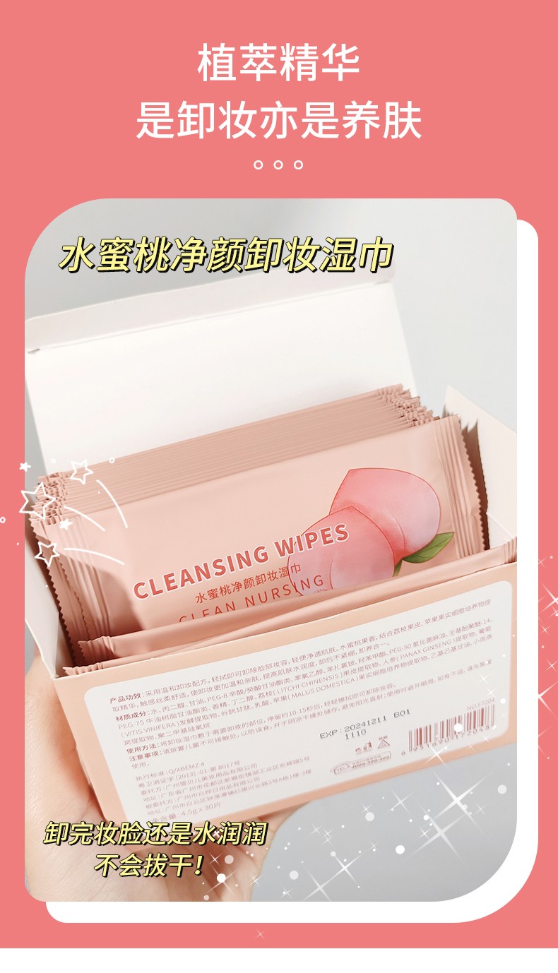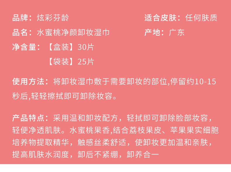 F7203-水蜜桃净颜卸妆湿巾25片